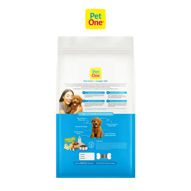 Được làm từ protein thịt chất lượng cao và sữa, cung cấp các axit amin thiết yếu giúp tăng cường cơ bắp, năng lượng và hỗ trợ sức khỏe, tuổi thọ tổng thể cho chó con.